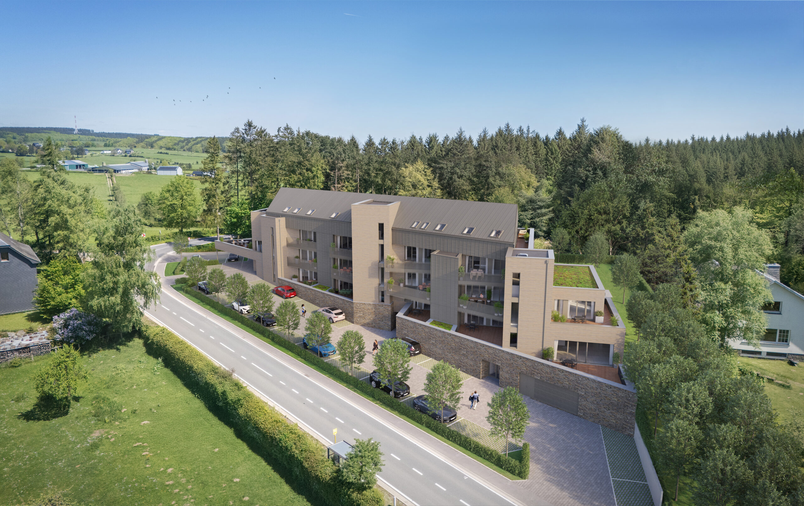 Die Architektur der Residenz Porta Vitha ist modern, klar und nachhaltig. Das Konzept vereint zeitgemäßen Wohnkomfort mit einer natürlichen Integration in die Umgebung.